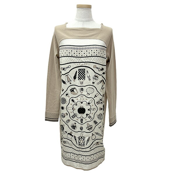 エルメス ワンピース ツイルレーヌ 香水瓶 バンダナ シルク ウール カシミヤ 38サイズ レディース ブランカッセ ベージュ HERMES 長袖 シルクワンピース 長袖ワンピース トップス アパレル 洋服 ブランド 未使用品
