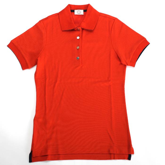 HERMES エルメス 半袖 ポロシャツ オレンジ H800270E クルードセルボタン ゴルフ 乗馬 レディース【新品・未使用・正規品】