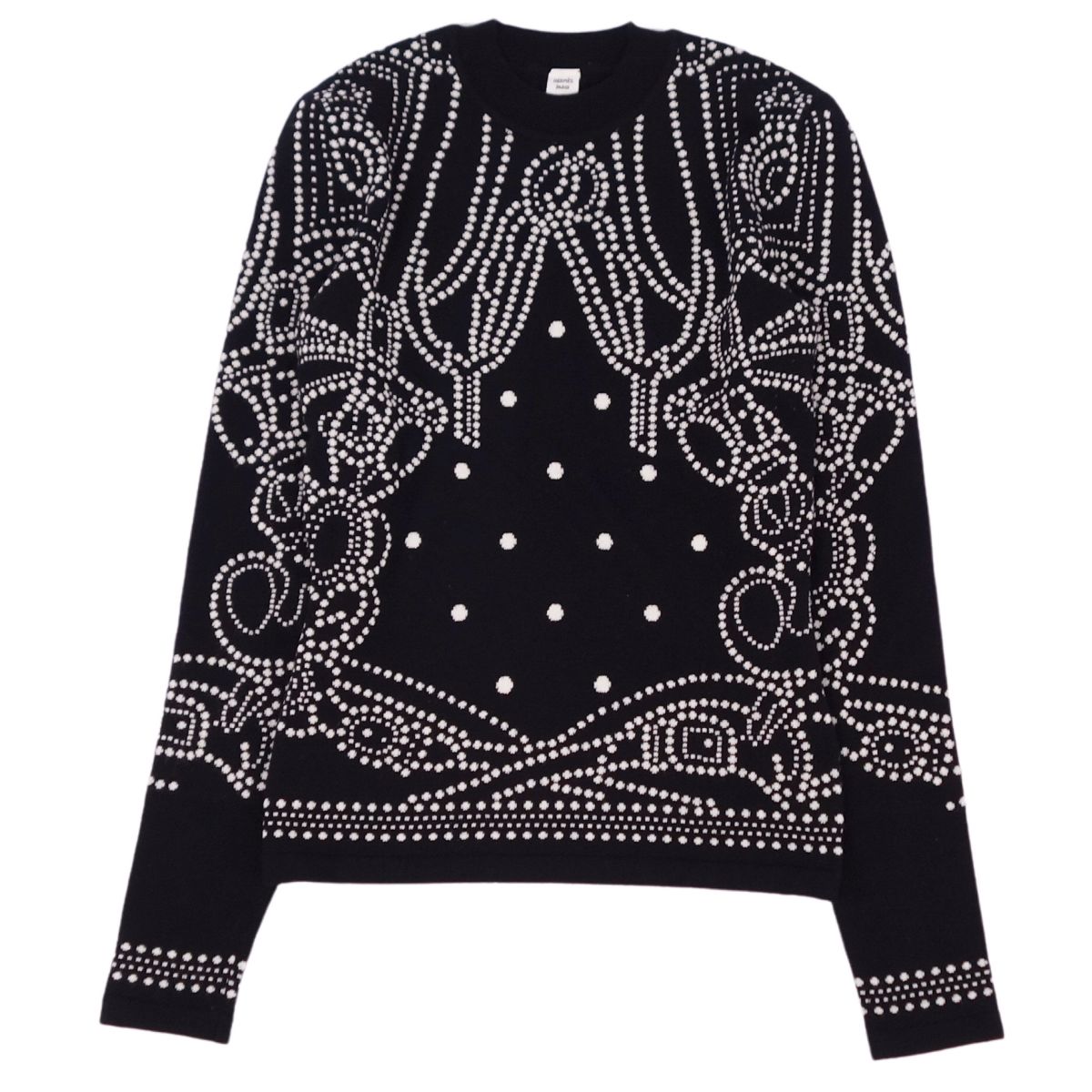 【極美品】エルメス HERMES 23SS ニット セーター ロングスリーブ 長袖 総柄 Brides de Gala カシミヤ トップス レディース 34(S相当) ブラック/ホワイト【中古】