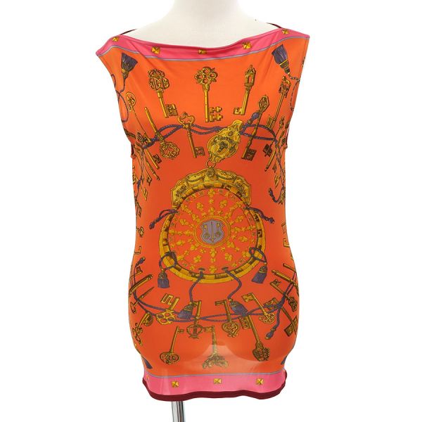 【最大3万円OFFクーポン対象!〜10/27】HERMES エルメス ノースリーブ セーターカシミヤ100% ニット オレンジ レディース 38サイズ 美品 古着 中古 h-003 h17-4046