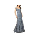 ララ レディース ワンピース トップス Women's Off Shoulder Mermaid Beaded Gown with Feathers Slate