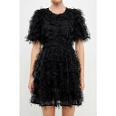 エンドレスローズ レディース ワンピース トップス Women's Gridded Mesh Feathered Puff Sleeve Mini Dress Black