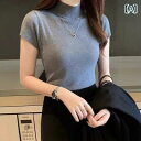 ニット セーター リブニット ハイネック 半袖 レディース トップス 半高 襟 ニット 女性 秋冬 シャツ中に セーターを 着て スリムに 見える 短い ベスト 上着 夏の 外 着x2