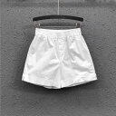 レディース ショートパンツ フェイクレザー 合皮 ウエストゴム シンプル 白い デニムの ショート パンツの 女性 2024 春夏の 新型の 港 味の 薄手 タイプの ゆったり ウエストの 広い 足の ホット パンツ