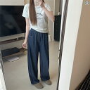 プリーツ ワイドパンツ ニット リラックス ロングパンツ レディース TRは デニムの 郭 形の バナナの ズボンを まねています。