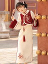 セットアップ レディース チャイナドレス 中華服 ベスト ジレ 改良 中国風 刺繍 赤 レッド 新年 お正月 晴れ着 祝賀 礼服 イベント ロング丈 立襟 長袖 ポリエステル
