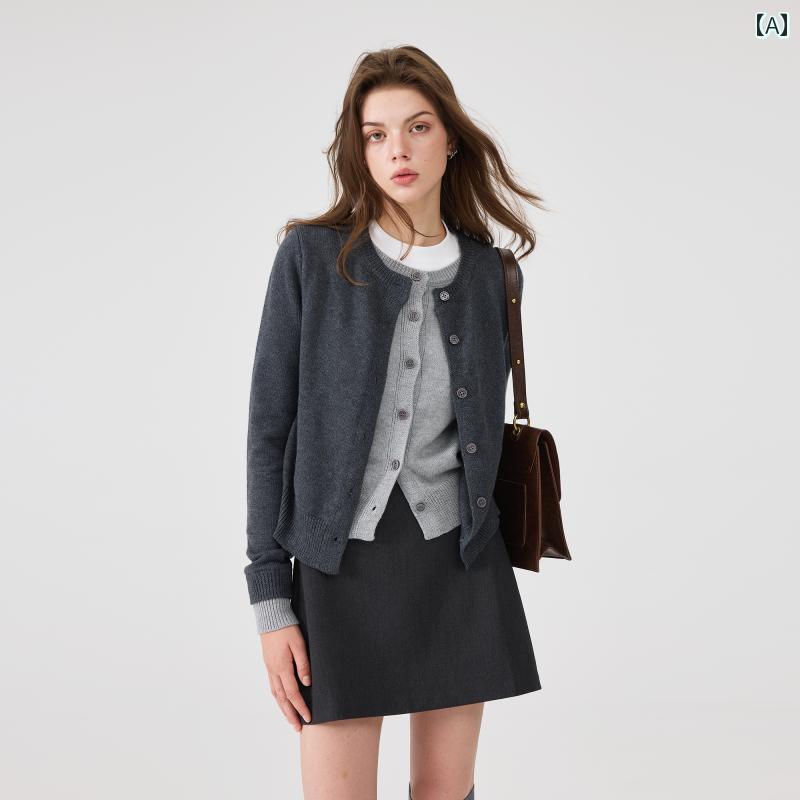 グレーニットカーディガン KICCC グレー サイレン スタイル 2024 秋冬 フェイク ツーピース ニットカーディガン エレガントな 通勤 ワークウェア