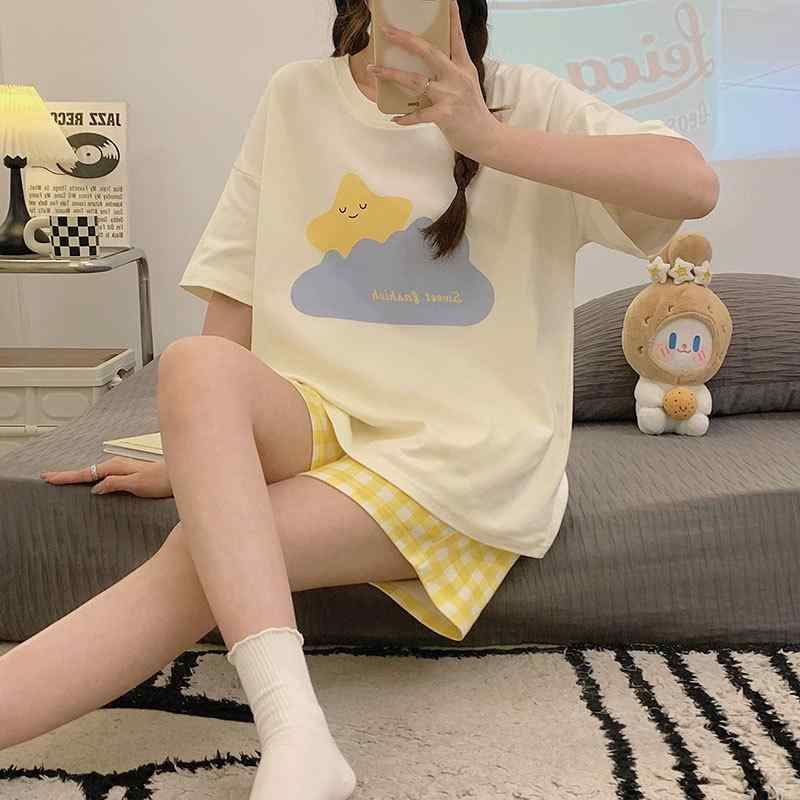 パジャマ レディース 女性用 夏 チェック柄 ポリエステル素材 軽スポーツ ルームウェア 部屋着 ワンマイルウェア 半袖 ショートパンツ カジュアル 上下セット セットアップ 通気性 快適 ナイトウェア 寝巻き