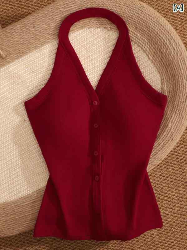 レディース トップス ホルターネック レディース トップス ホルターネック レトロ Vネックの 魅惑的 ホルターネックキャミソール ベスト 女性用 多 用途で スリム 背中が 開いた ホット ガール トップ