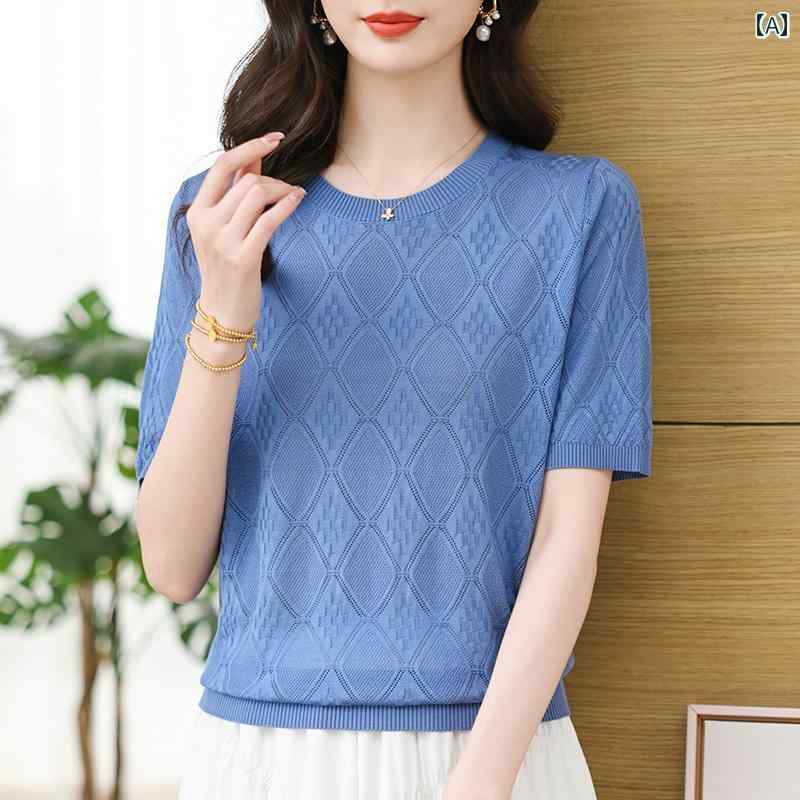 サマーニット レディース 2025 半袖 Tシャツ レディース 無地 ゆったり 大きいサイズ 万能 トップス 夏 マルベリー ニット シャツ 薄手 スタイル