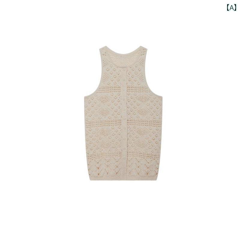 サマーニット レディース 韓国 クロシェ 編み キャミソール。 レディース 夏用。 スリムフィット。 ノースリーブ トップス。