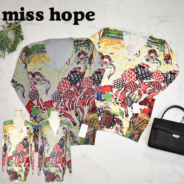 長袖 カーディガン ロング丈 ロングカーデ miss hope 124050【小】プリント 総柄 ベージュ/グレー ミドル丈 きれいめ アウター レディース 半額 \定価から50%OFF/