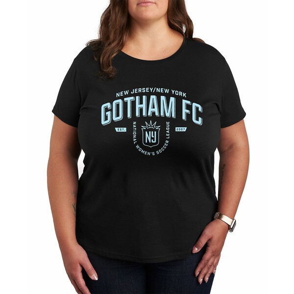 ハイブリッド アパレル レディース カットソー トップス Plus Size Trendy NY NJ Gotham FC Graphic Crew Neck T-Shirt Black