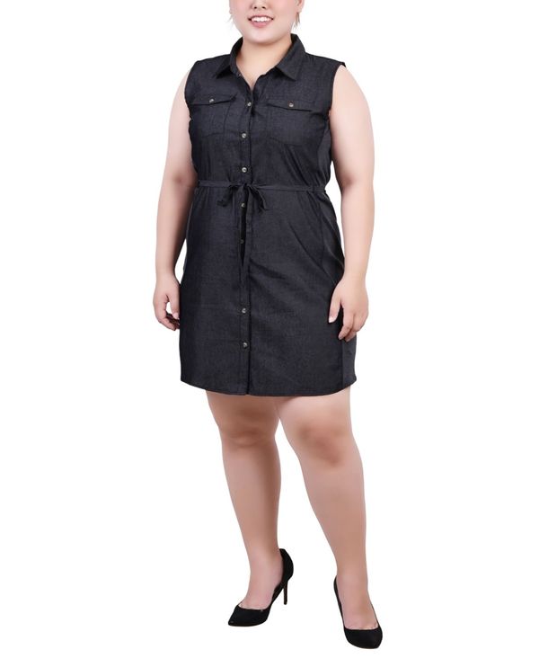 ニューヨークコレクション レディース トップス ワンピース プラスサイズ ノースリーブ NY Collection Plus Size Sleeveless Belted Chambray Dress Black Denim ブラック