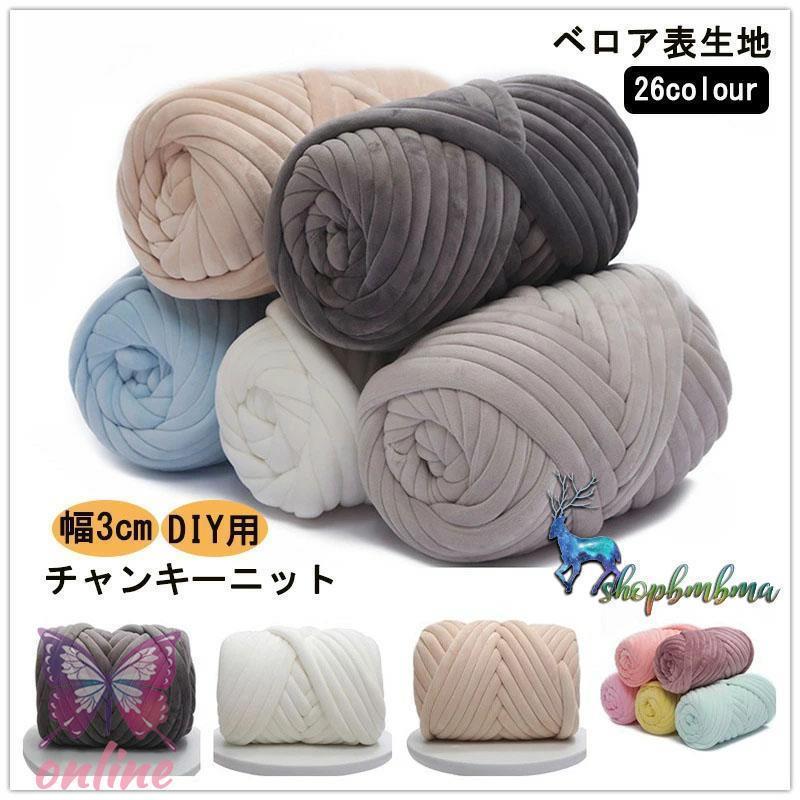チャンキーニット ヤーン 北欧風 ベロア表生地 ニットヤーン 幅3cm ウール 無地 極太毛糸 毛糸 手芸 リバーシブル 編み物 太い 極太 ハンドメイド 太いヤーン