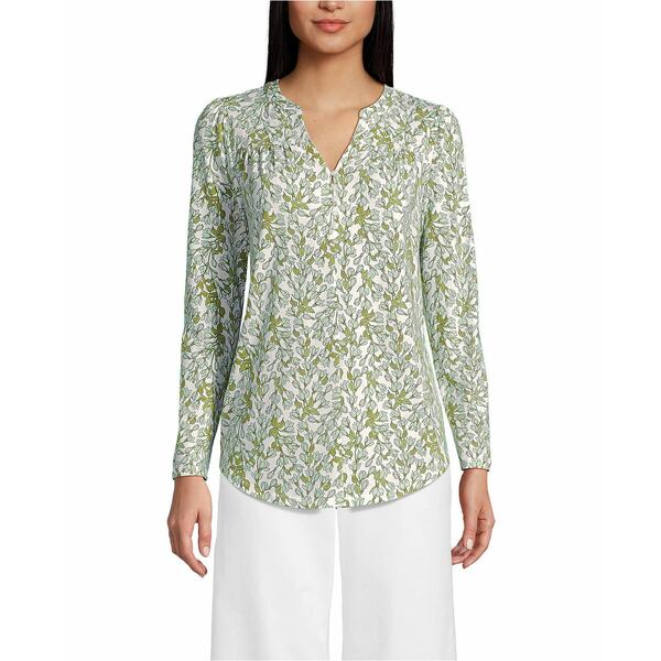 ランズエンド レディース カットソー トップス Women's Long Sleeve Lightweight Jersey Notch Neck Tunic Top Ivory/icy mint bloom floral