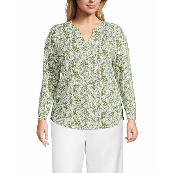ランズエンド レディース カットソー トップス Women's Plus Size Long Sleeve Lightweight Jersey Notch Neck Tunic Top Ivory/icy mint bloom floral