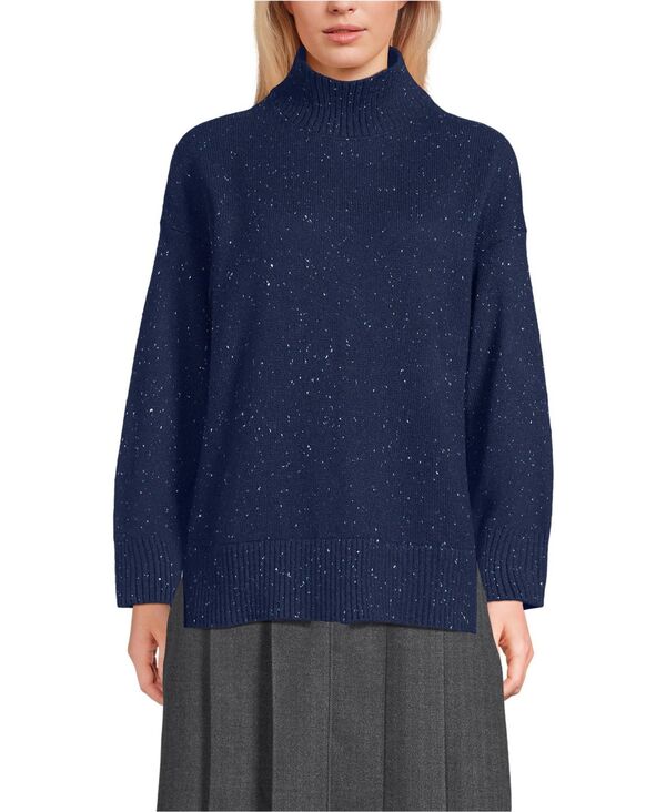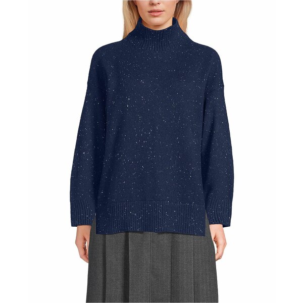 ランズエンド レディース アウター ニット・セーター タートルネック セーター Lands' End Women's Cozy Lofty Split Hem Turtleneck Sweater Deep sea navy icy donegal ネイビー