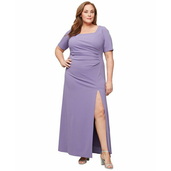 アレックスイブニングス レディース ワンピース トップス Plus Size Scuba Crepe Square-Neck Gown Icy Orchid