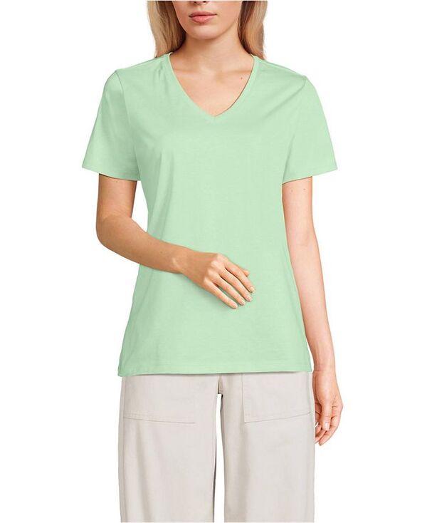 ランズエンド レディース トップス シャツ Vネック プチ Tシャツ コットン Lands' End Women's Petite Relaxed Supima Cotton V-Neck T-Shirt Icy mint green グリーン