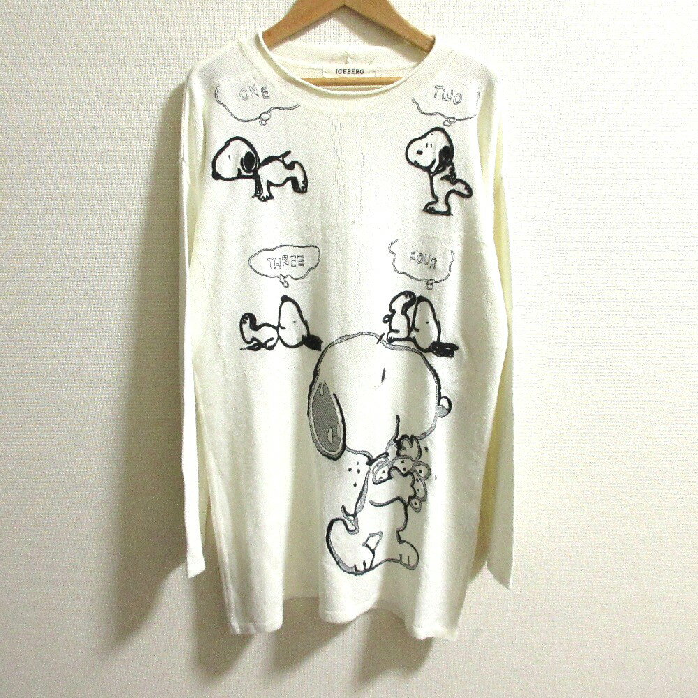 【中古】 ICEBERG × PEANUTS アイスバーグ ピーナッツ コラボ スヌーピー 刺繡 長袖 ニットチュニック カットソー ホワイト レディース Luxs ブランド古着のリュクス