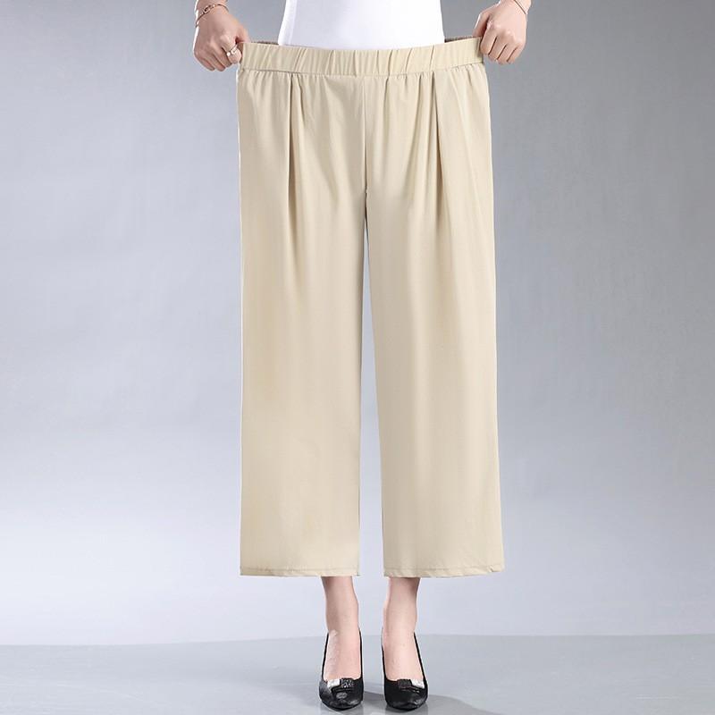 パンツ レディース ママ シニア 大きいサイズ ストレート ゆったり 薄手 ミドルウエスト 9分丈 春夏 普段使い リラックス ポリエステル ブラック グレー カーキ ホワイト