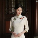 チャイナドレス レディース モダン 高級感 フェミニン 若年層向け 結婚式 披露宴 お呼ばれ パーティー 入籍記念日 普段使い デイリー ワンピース ポリエステル アイボリー 刺繍