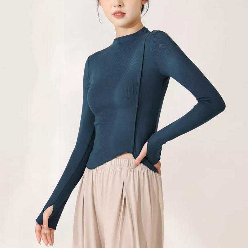 ダンスウェア レディース 大人用 指穴付き 長袖 トップス スリムフィット モダンダンス 中国民族舞踊 古典舞踊 練習着 レッスンウェア フィットネス 舞台衣装 リブニット 再生繊維 ブラック ダークブラウン アプリコット ターコイズブルー