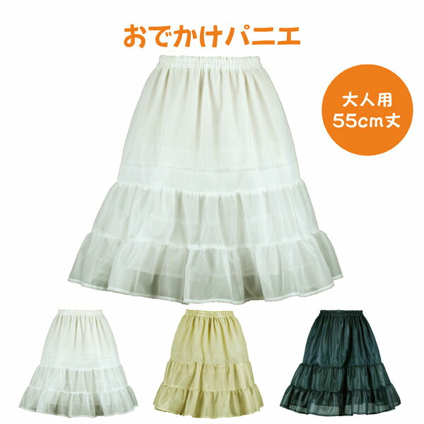 日本製 おでかけパニエ55cm丈♪ ペチコート ワンピース 発表会 結婚式 セレモニー 冷房対策 スカート オフホワイト ブラック ベージュ