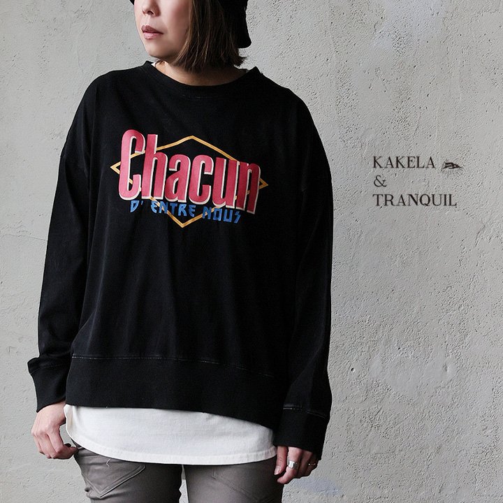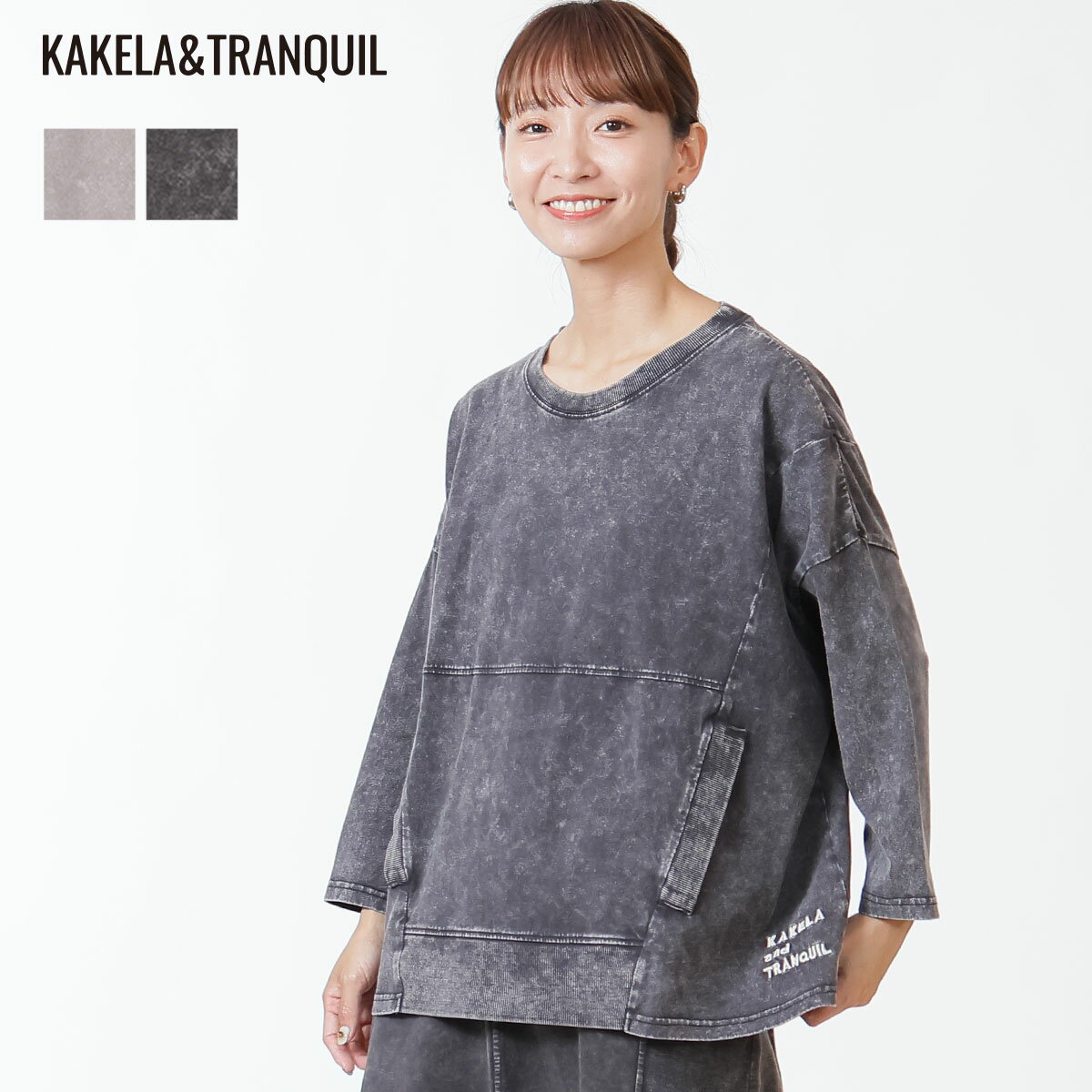 カットソー 長袖 レディース クルーネック ロゴプリント 綿100 コットン 天竺 ピグメント 褪せ色 大きいサイズ 体型カバー ゆったり カジュアル 春 秋 冬 パティ KAKELA&TRANQUIL カケラ&トランクイル
