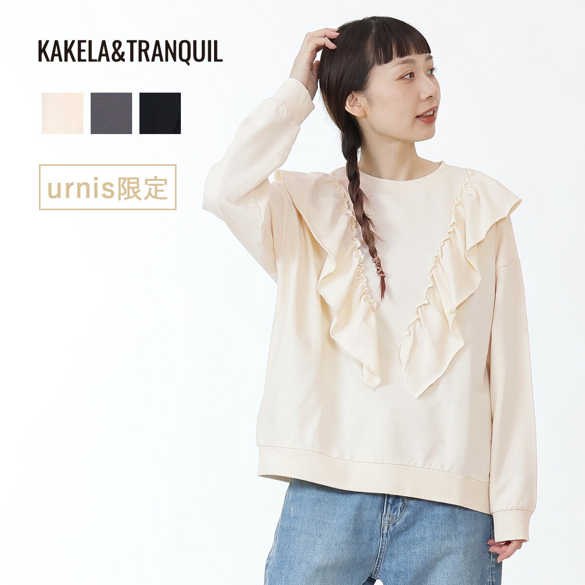 ★ SALE 23.7%OFF ★KAKELAandTRANQUIL 【当店限定】 スウェット フリル トップス レディース 長袖 フリルクルー スウェット トレーナー ゆったり 体型カバー フェミニン 綿100% コットン 別注 カケラアンドトランクイル カジュアル シンプル 無地 大人かわいい 秋 冬 新作