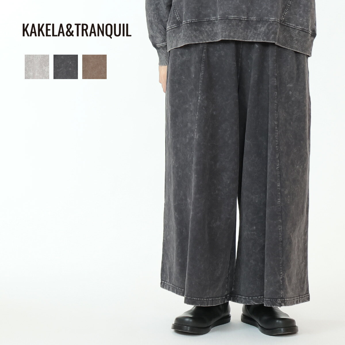 KAKELAandTRANQUIL ワイドパンツ MINI裏毛 レディース ボトムス ボトムス カケラ アンド トランクイル ピグメント ビンテージ加工 綿100% 刺繍 ロゴ 秋 新作 カジュアル 軽め セットアップ タイト ゆったり +古着感 ファッション