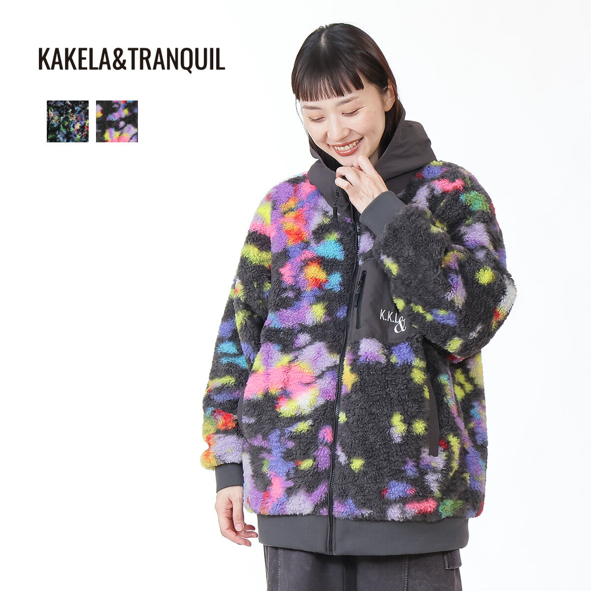 KAKELAandTRANQUIL ボアアウター サイケ柄 フード付き アウター ジャケット ブルゾン ジップブルゾン 防寒 刺繍 秋冬 あったか カジュアル カケラアンドトランクイル カケラ 新作 Fサイズ 個性的 撥水 ゆったり もこもこ ファッション