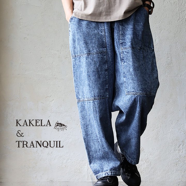 サルエルパンツ デニム ワイド イージー レディース バイオウォッシュ 綿100 コットン 薄手 軽い 涼しい ゆったり ウエストゴム 体型カバー カジュアル ヴィンテージ パティ KAKELA&TRANQUIL カケラ&トランクイル