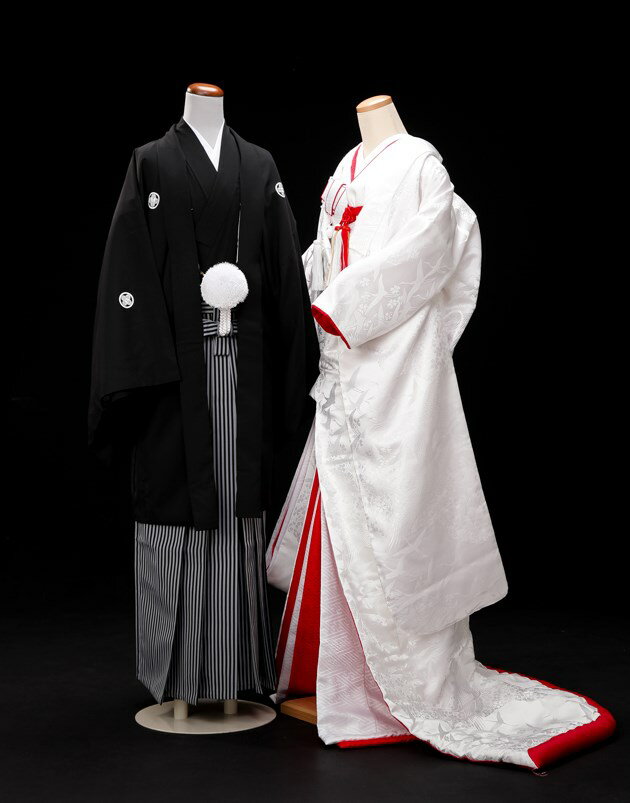 ※上記のご予約状況カレンダーを 必ずご確認いただきご注文下さい 着物のサイズなどについて詳しくお知りになりたい方は お電話でお気軽にお問い合せください。 【フリーダイヤル】 0120-140-375 【レンタルガイド】 ◆レンタルから返却までの流れ ◆レンタルご利用規約 ◆レンタル保険 ホっとプラス ◆ご予約のキャンセルについて ◆よくある質問 【品 番】 su006(格式高い裏地赤×慶びの華に飛翔鶴/花嫁衣装の白無垢・紋付フルセットレンタル/神前結婚式/人前式) 【サイズ】 [白無垢レンタル] 標準サイズ 身長・・・150cm〜170cm位 洋服サイズ…13号まで [紋服レンタル] 標準サイズ 身長・・・160cm〜190cm位(身長に合わせてサイズをご用意致します) 【利用用途】 神社(神前式)・お寺(仏式)での結婚式や披露宴におすすめです。 前撮りやフォトウェディング・イベントにもご利用いただけます。 【素 材】 [白打掛レンタル]表地:高級打掛交織仕様/裏地:合成繊維 [紋服レンタル]表地:高級交織仕様/裏地:合成繊維 【レンタル内容】 [白無垢レンタル]白無垢、掛下、掛下帯、長襦袢、肌襦袢、着付け小物一式、箱せこセット、草履、足袋、綿帽子 [紋服レンタル] 紋服一式、長襦袢、肌襦袢、角帯、扇子・羽織紐、腰紐、足袋、草履 【レンタル期間】 レンタル期間は基本4泊5日となります。 ※1週間(6泊7日)レンタルまで延長無料! ご希望の方はご注文時備考欄に記載ください。 基本ご利用日2日前 or 3日前にお届けになります。(お選び下さい) レンタル期間に合わせてご利用日の翌日 or 翌々日までに返却発送して下さい。 【紋付袴 広巾サイズについて】 新郎様の紋付袴は「+5000円」の追加料金にて 広巾サイズに変更が可能でございます。 ウエストや胸囲サイズが「100cm-120cmくらい」の方対応と なりますのでご希望の際にはご選択くださいませ。 ※「155cm-165cm対応」は「115cmくらい」までの方対応となります。 【綿帽子サポート金具オプションについて】 洋髪で綿帽子を使用する際に形を保つものとなります。 2500円のオプション料金にてご用意が可能でございますので ご希望の際はご注文時にご選択くださいませ。 【備考】 ※レンタル品です。販売用ではありません。 ※紋服が不要の場合は商品代金より10,000円割引となります(お選び下さい) ※オールシーズン(春・夏・秋・冬)ご利用可能です。 ※ご希望の方に当店人気のフォトブックを無料プレゼント! ※裏赤タイプの白無垢は2着ございます。 ◆他の裏赤タイプはこちらから *素材感や色合いの表現には個人差があり、環境により色合いが異なる場合がありますので、ご了承の上ご注文お願い致します。 ★安心のフルセットレンタル★ ★小物や着付けセット含め、専用箱にてお届けします★