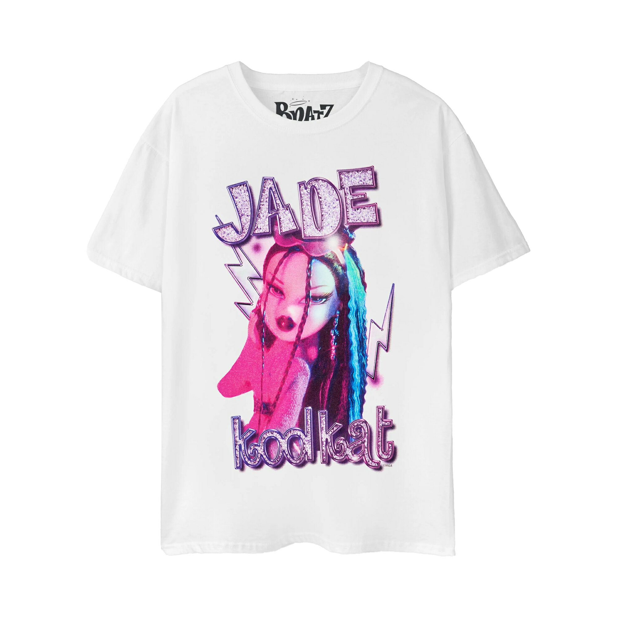 アニメキャラクター レディース トップス Tシャツ グラフィック Licensed Character Juniors' Bratz Jade Kool Kat Pink Sparkle Lightning Boyfriend Graphic Tee Black ブラック