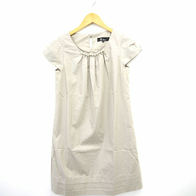 【中古】Krone ワンピース 装飾品 丸首 ひざ丈 フレンチスリーブ 9AR ベージュ 薄茶 /MT24 レディース 【ベクトル 古着】 210616