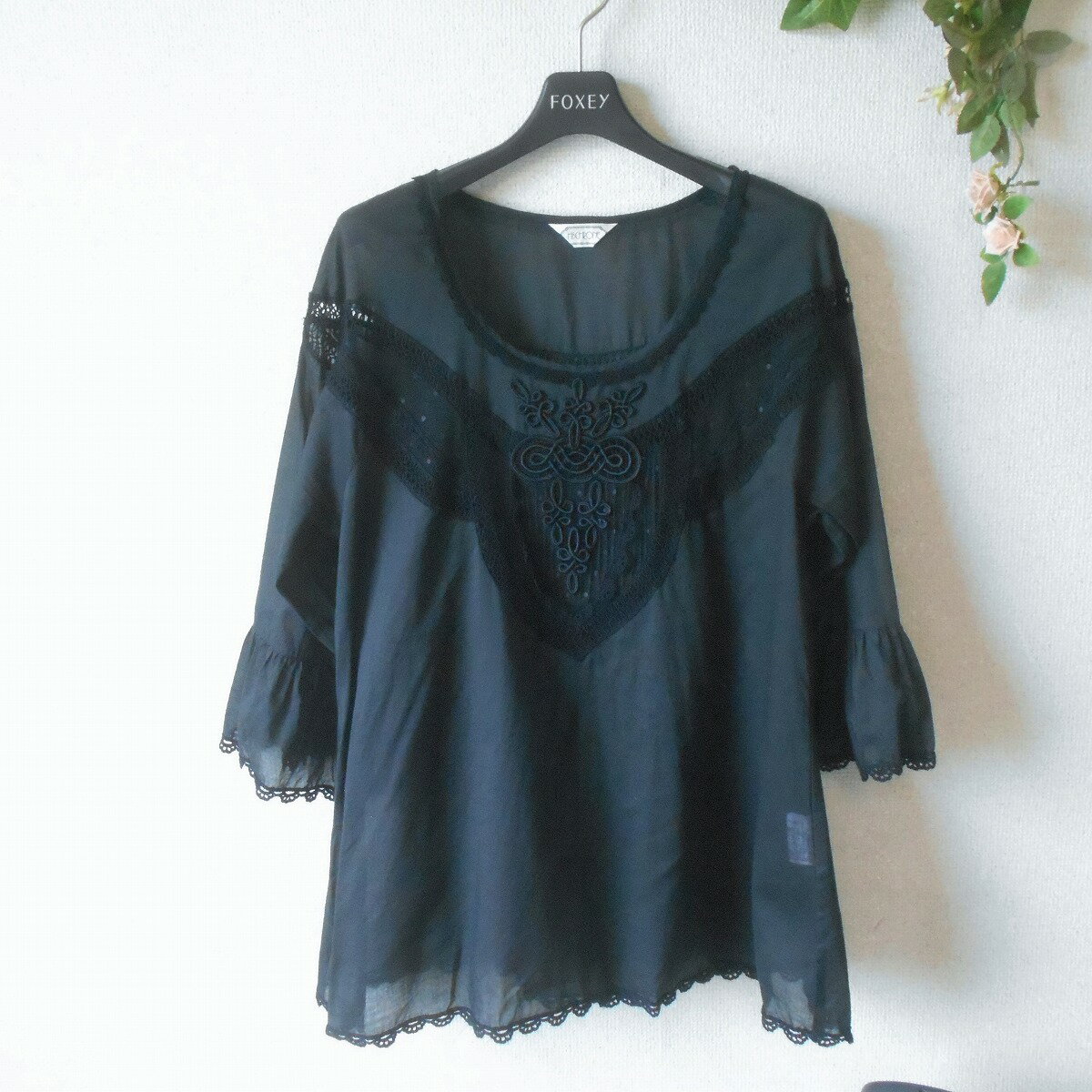 【中古】ヒスクローネ HISCHRONE ブラウス カットソー レース M レディース 7分袖 春 夏 黒