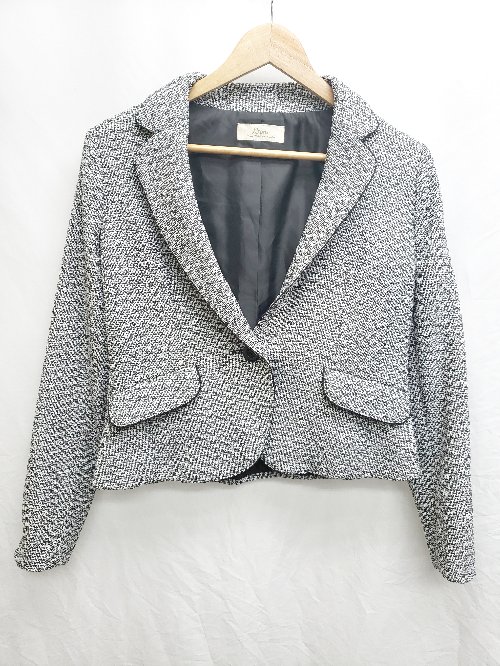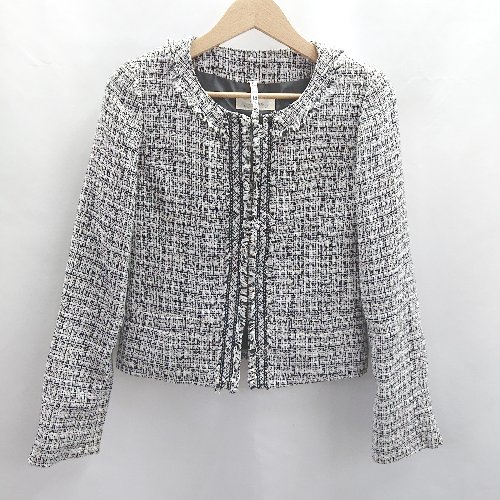 ◇ ⊇ krone クローネ ツイード モノトーン 長袖 ノーカラージャケット サイズ9AR ブラック ホワイト レディース E 【中古】