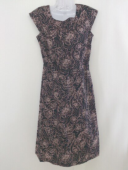 ◇ ◎ krone クローネ 花柄 フレンチスリーブ 膝下丈 ワンピース サイズ9 ブラック ピンク レディース 【中古】