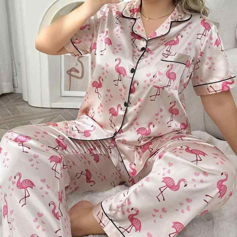 パジャマ レディース 大きいサイズ 半袖 長ズボン 上下セット ルームウェア 寝巻き 部屋着 婦人 女性 ポリエステル サテン Vネック 花柄 ゆったり 快適 リラックス