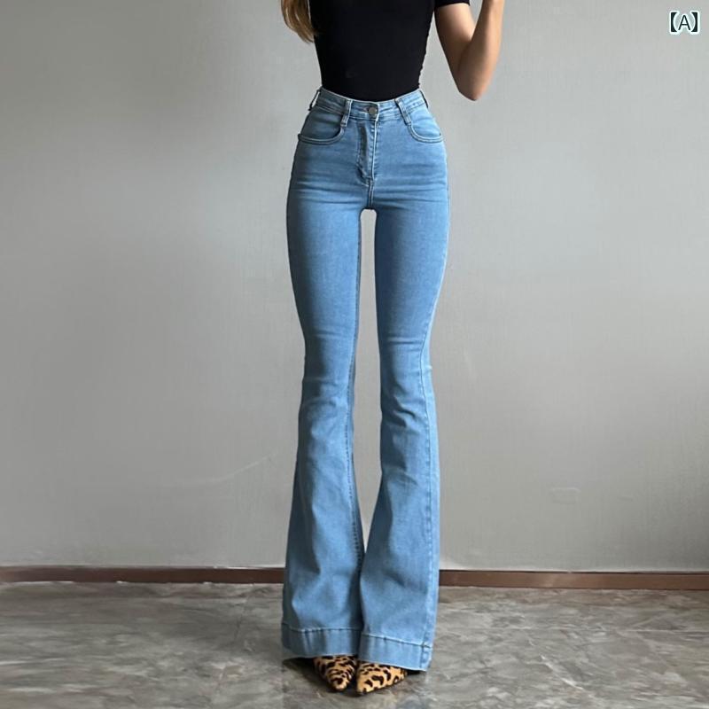 レディース パンツ オシャレ PINKMANTIS 誰もが 脚が 長い レトロ フレア ジーンズ ハイウエスト