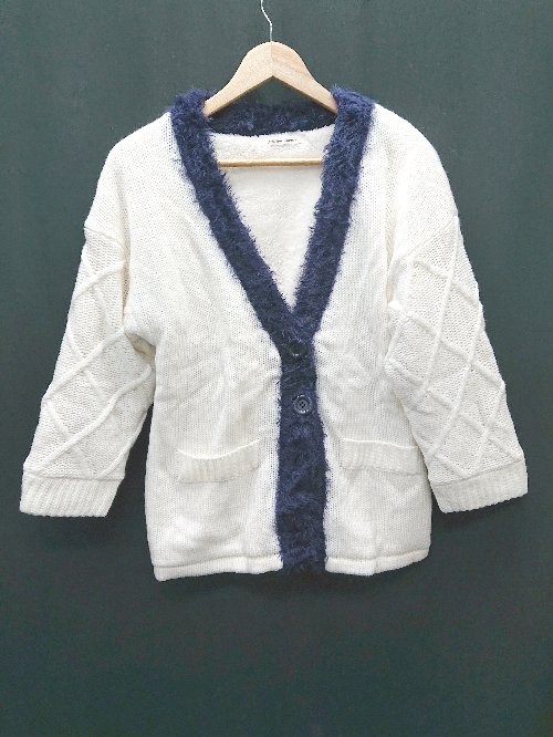 ◇ Million Carats ミリオンカラッツ 裏ボア かわいい 長袖 ニット カーディガン サイズF ホワイト ネイビー レディース P 【中古】