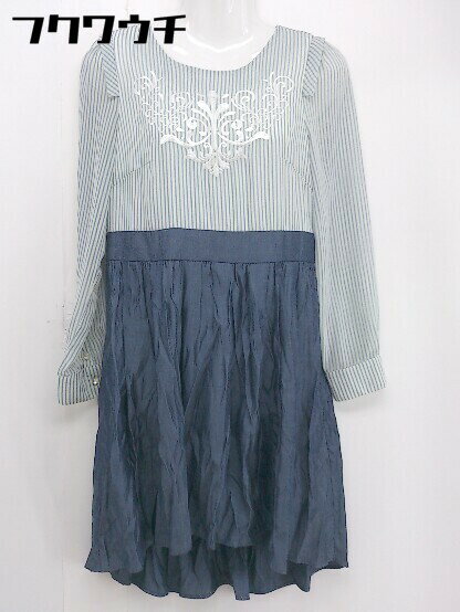 ◇ Million Carats ミリオンカラッツ ストライプ 刺繍 切替 長袖 ワンピース サイズM アイボリー系 ブルー系 レディース 【中古】