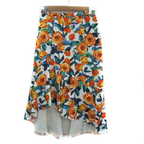 【中古】未使用品 ミリオンカラッツ Million Carats ペプラムスカート フレアスカート フィッシュテール ロング丈 花柄 M マルチカラー オレンジ /YS2 レディース 【ベクトル 古着】 250428