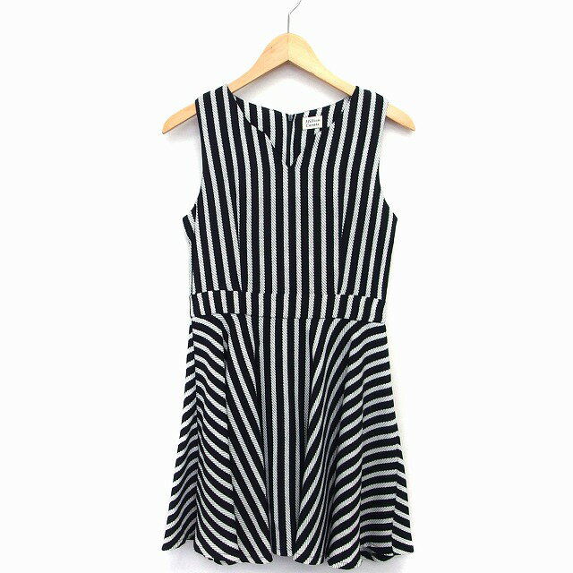 【中古】ミリオンカラッツ Million Carats ワンピース フレア 膝上 ミニ ノースリーブ Vネック ストライプ ロープ 柄 厚手 F ブラック 黒 /HT21 レディース 【ベクトル 古着】 220825