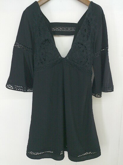◇ million Carats レース刺繍 フレアスリーブ ミニ チュニックワンピース サイズS ブラック レディース 【中古】