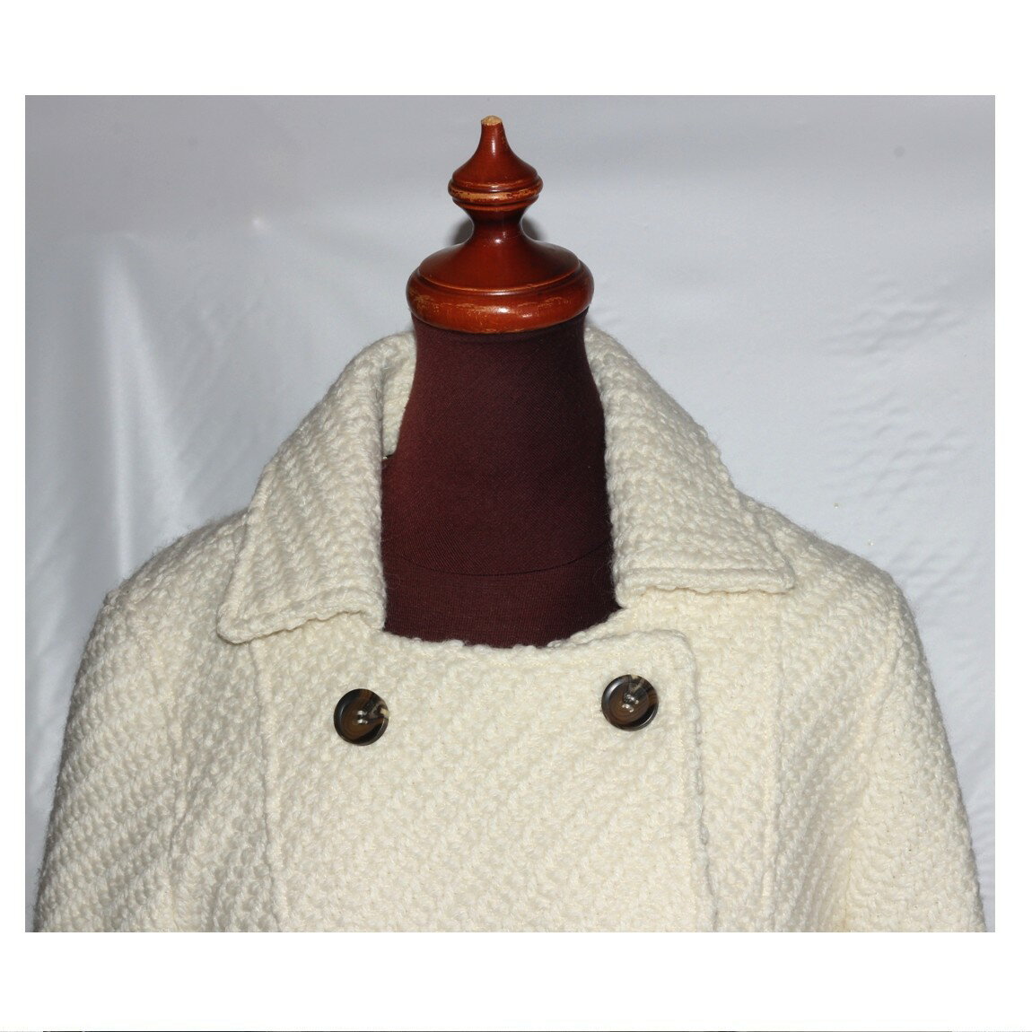 Million Caratsミリオンカラッツの女性用白い暖かいハーフコートの出品です。サイズ表記はSで実寸で着丈52、肩幅36、身幅44、袖丈55cmで素材は表地がウール35%、レーヨン35%、ポリエルテル30%で裏地がポリエステル100%です。裏地に黒いドット模様が施されている綺麗な状態ですのでお勧めです。管理番号〇D20-31-4