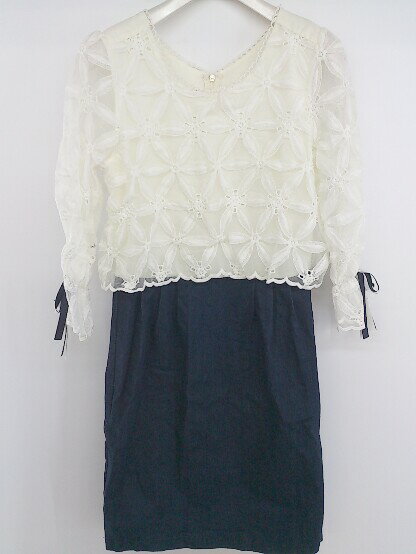 ◇ Million Carats 刺繍 シアー 切替 七分袖 膝丈 ワンピース サイズS アイボリー系 ネイビー レディース E 【中古】