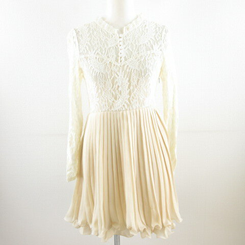 【中古】ミリオンカラッツ Million Carats レースワンピース プリーツ ミニ ベージュ オフホワイト M *A668 レディース 【ベクトル 古着】 240124